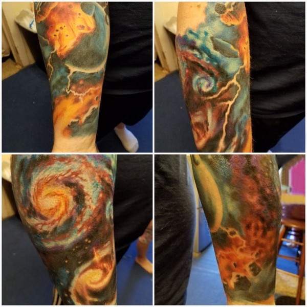 纹身星球 男生手臂上彩色纹身星球纹身图片
