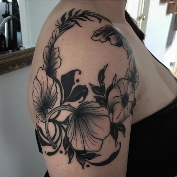 双大臂纹身 女生大臂上精致的花朵纹身图片