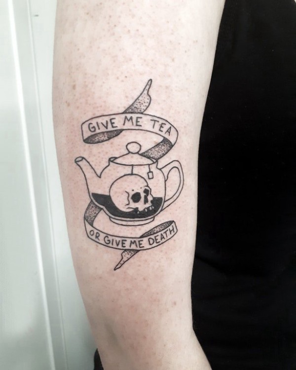 手臂纹身素材 男生手臂上英文和茶壶纹身图片