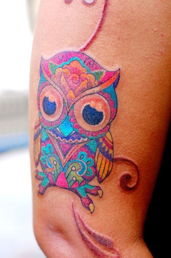 纹身猫头鹰 多款彩色渐变纹身猫头鹰动物纹身图案