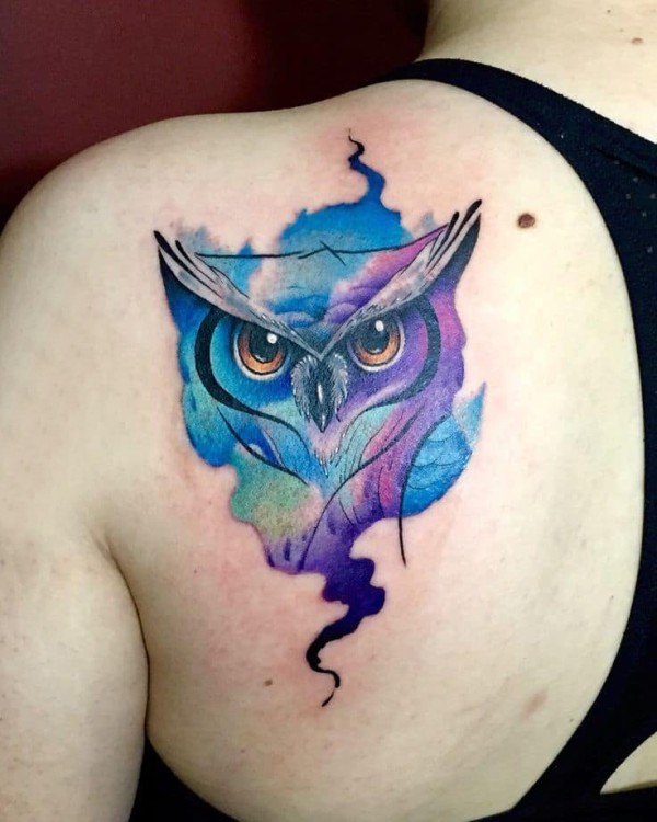 纹身猫头鹰 多款彩色渐变纹身猫头鹰动物纹身图案
