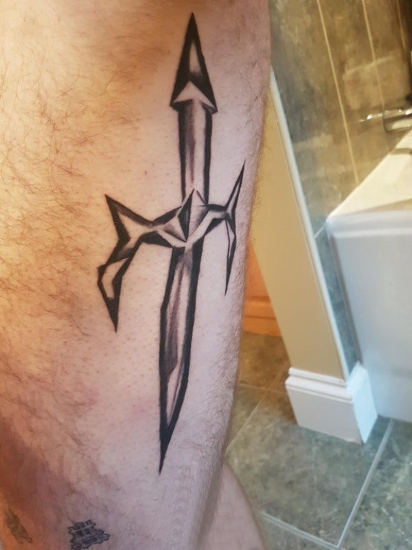 小腿对称纹身 男生小腿上黑色的宝剑纹身图片