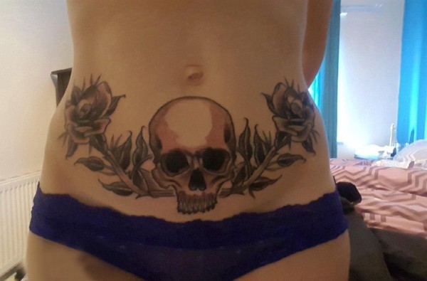腹部纹身 女生腹部植物和骷髅纹身图片
