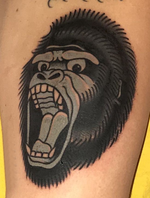 百乐动物纹身 男生大腿上黑色的猩猩纹身图片
