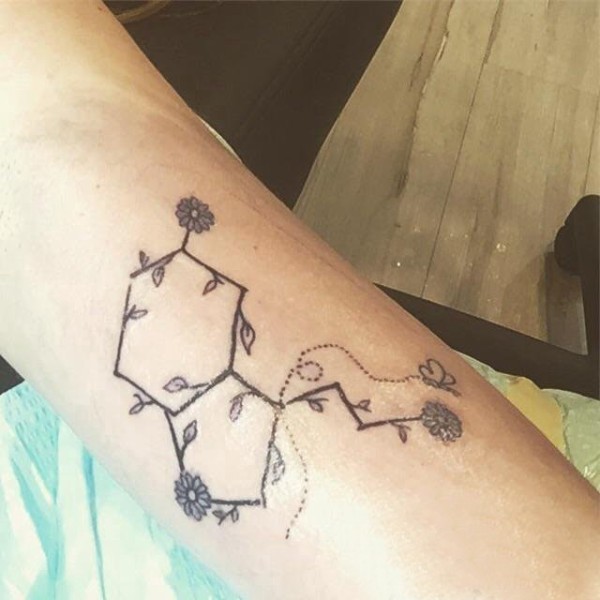 女性侧肋上漂亮的弯月形状藤蔓小花纹身图片