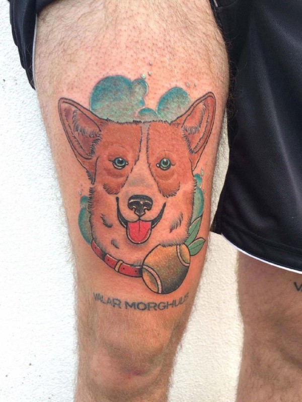 大腿纹身男 男生大腿上英文和小狗纹身图片