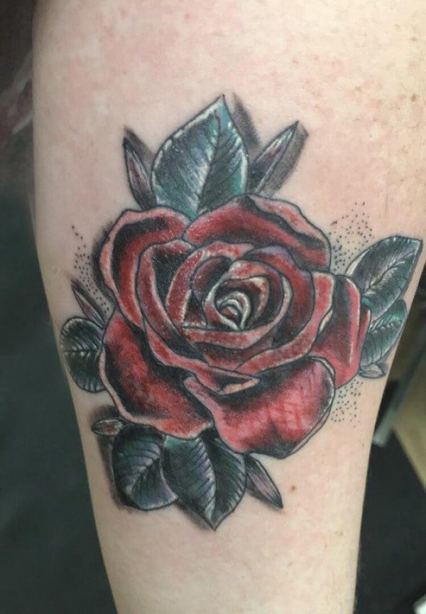欧美小腿纹身 女生小腿上彩色的玫瑰纹身图片