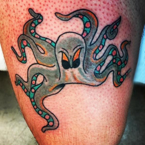大腿纹身男 男生大腿上彩色的章鱼纹身图片