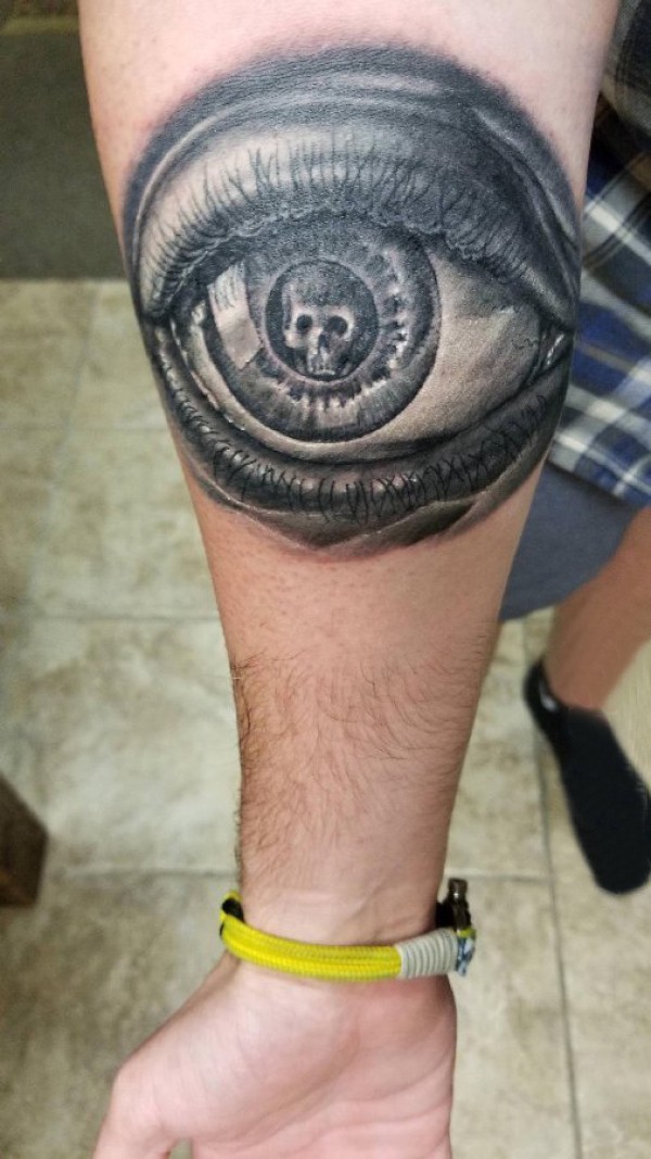 手臂纹身素材 男生手臂上骷髅和眼睛纹身图片