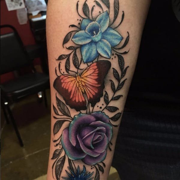 彩绘纹身 多款彩色纹身素描简单线条纹身图案