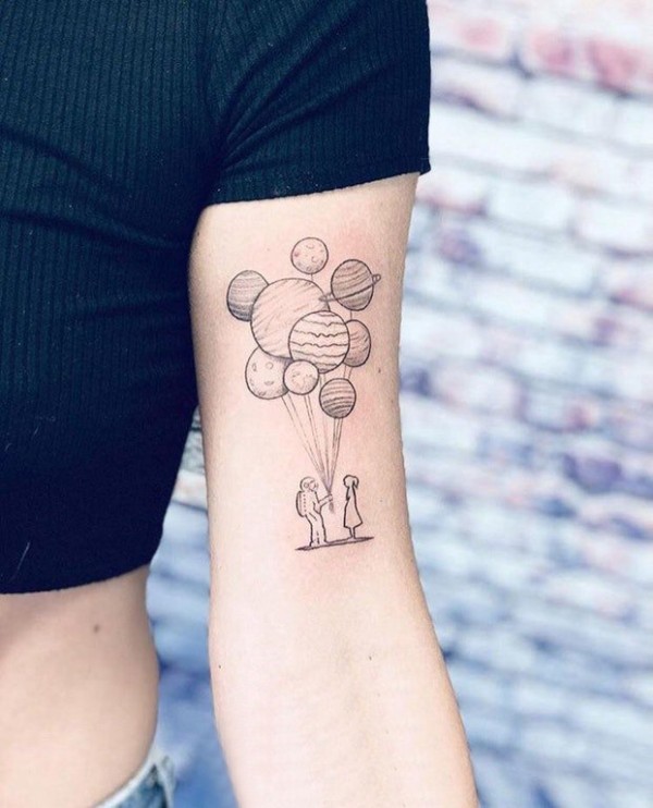 手臂纹身素材 女生手臂上人物和气球纹身图片