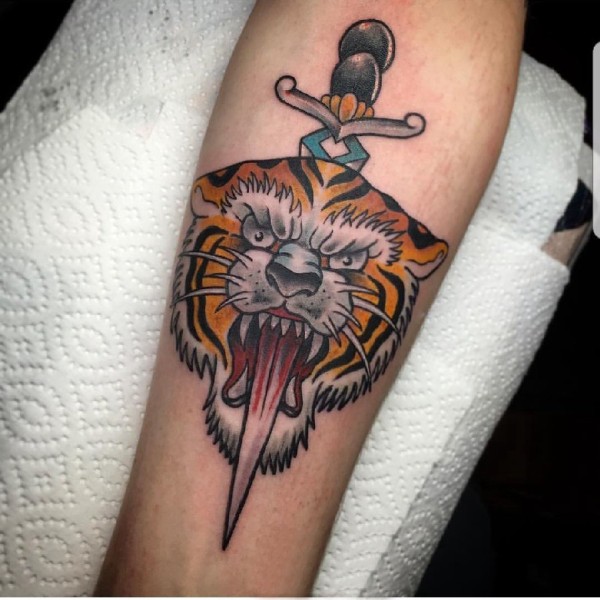 老虎头纹身图案 男生手臂上老虎图腾纹身图片