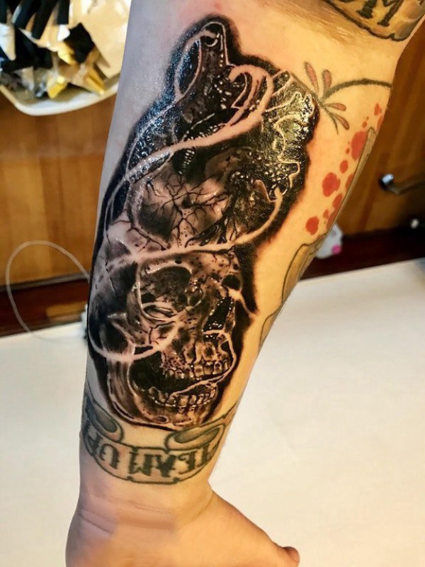 骷髅纹身 男生手臂上骷髅头纹身图片
