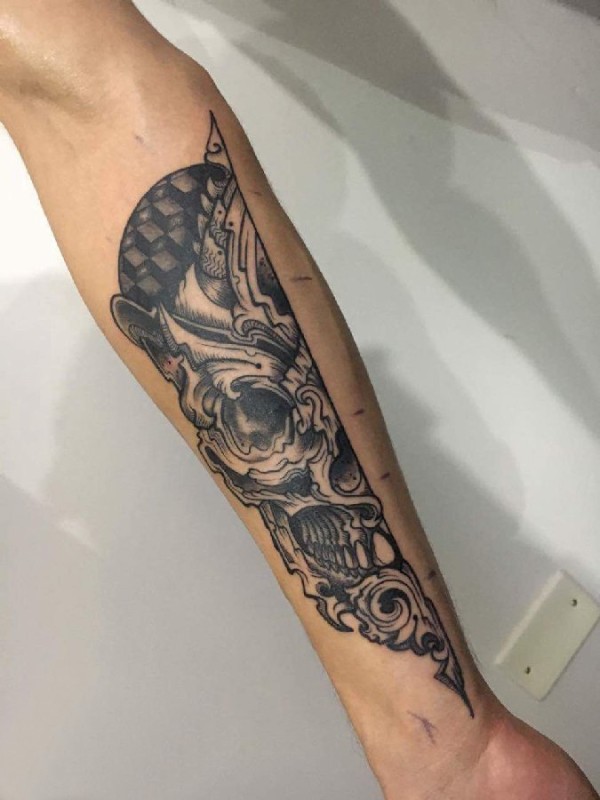 骷髅头纹身 男生手臂上骷髅头纹身图片