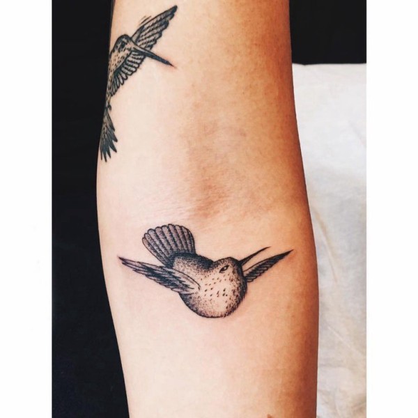 手臂纹身素材 女生手臂上黑色的小鸟纹身图片
