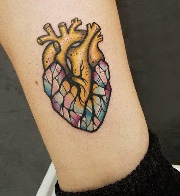 欧美小腿纹身 女生小腿上彩绘的心脏纹身图片