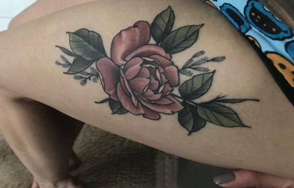 欧美玫瑰纹身 女生大腿上玫瑰小清新纹身图片