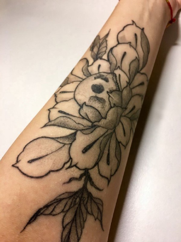 文艺花朵纹身 女生小腿上花朵纹身图片