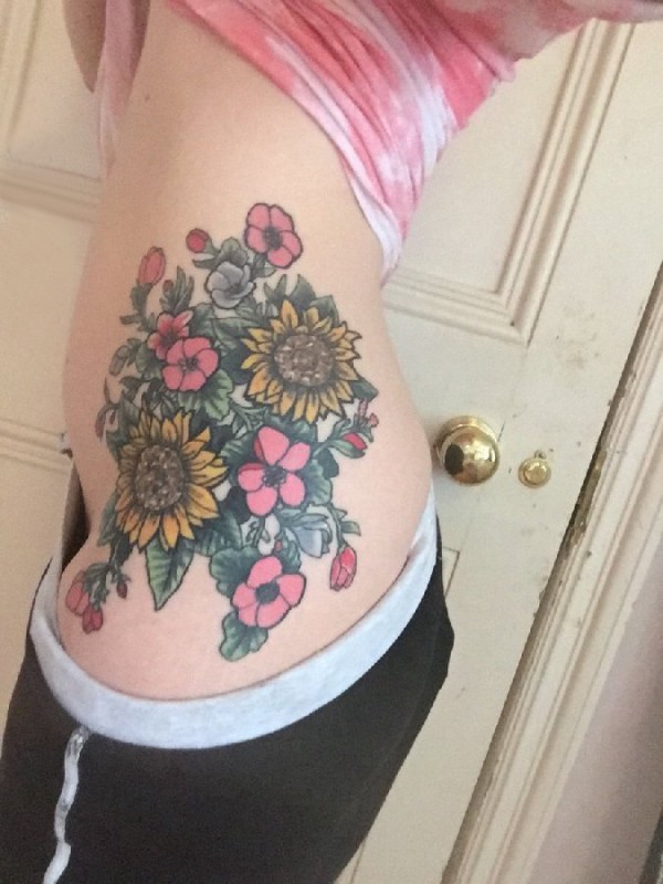 文艺花朵纹身 女生侧腰上文艺花朵纹身图片