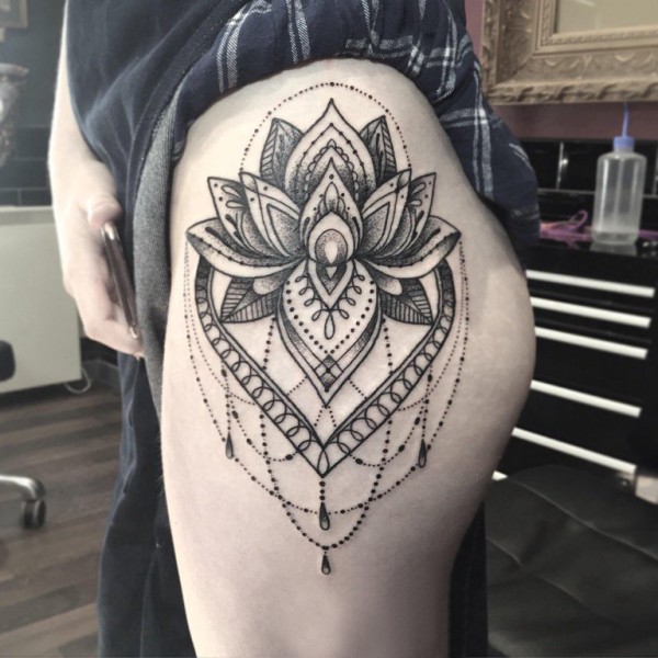 睡莲花纹身 女生大腿上睡莲花纹身图片