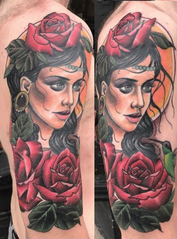 女性人物纹身图案 男生大臂纹身女性人物纹身图案
