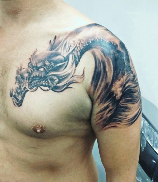 大臂纹身图 男生大臂上黑色的龙纹身图片