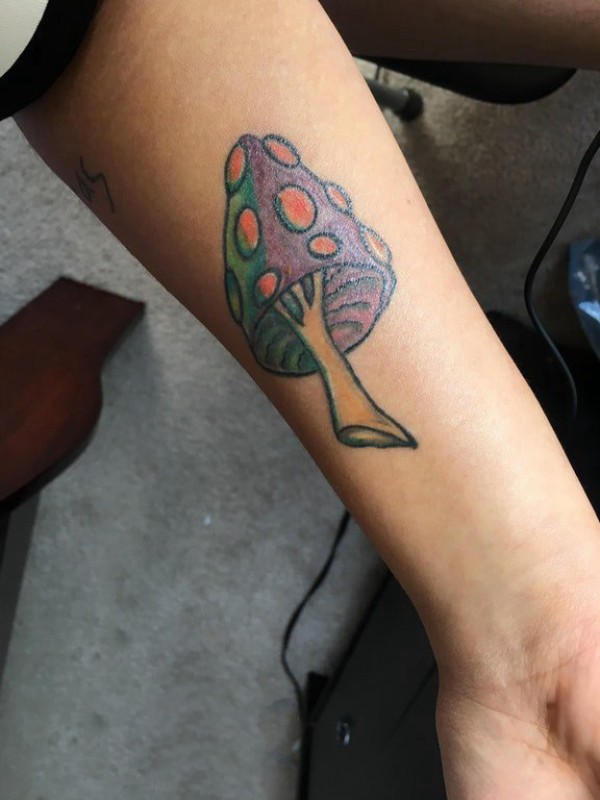 植物纹身 女生手臂上彩色的蘑菇纹身图片