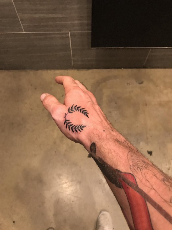 植物纹身 男生手背上黑色的植物藤纹身图片