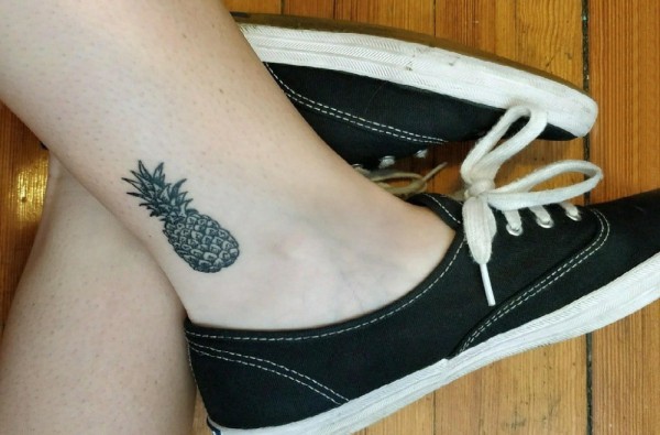 植物纹身 女生脚踝上黑色的菠萝纹身图片