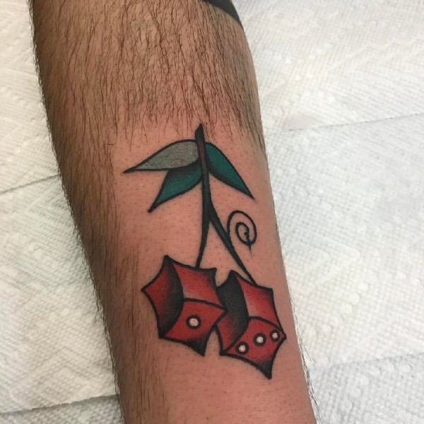 植物纹身 男生小腿上彩色的几何樱桃纹身图片
