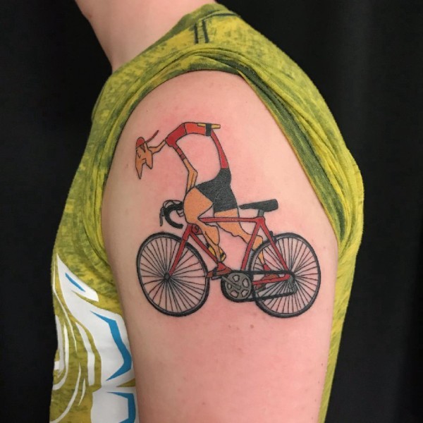 自行车齿轮纹身 男生手臂上人物和自行车纹身图片
