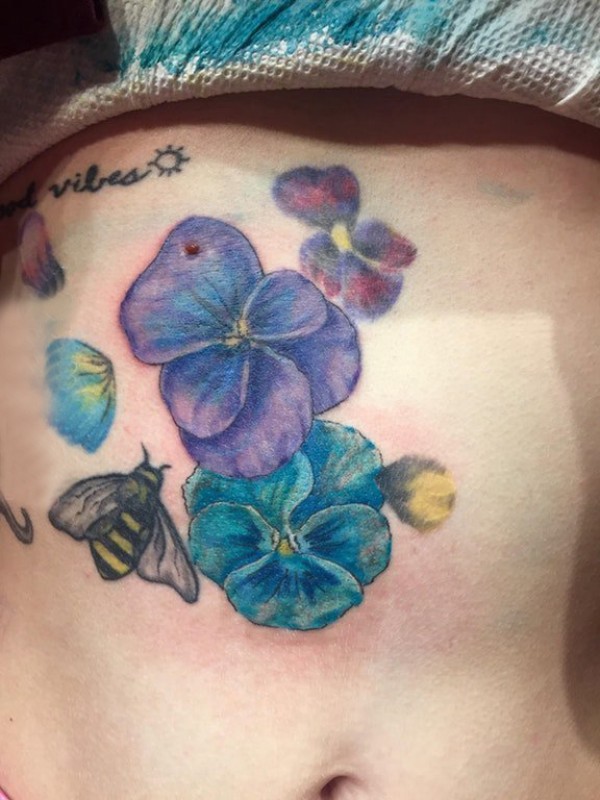 植物纹身 女生腹部彩色的紫罗兰纹身图片
