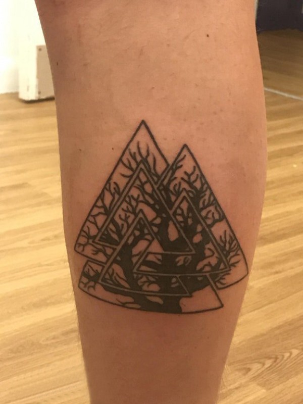 植物纹身 男生小腿上三角形和树纹身图片