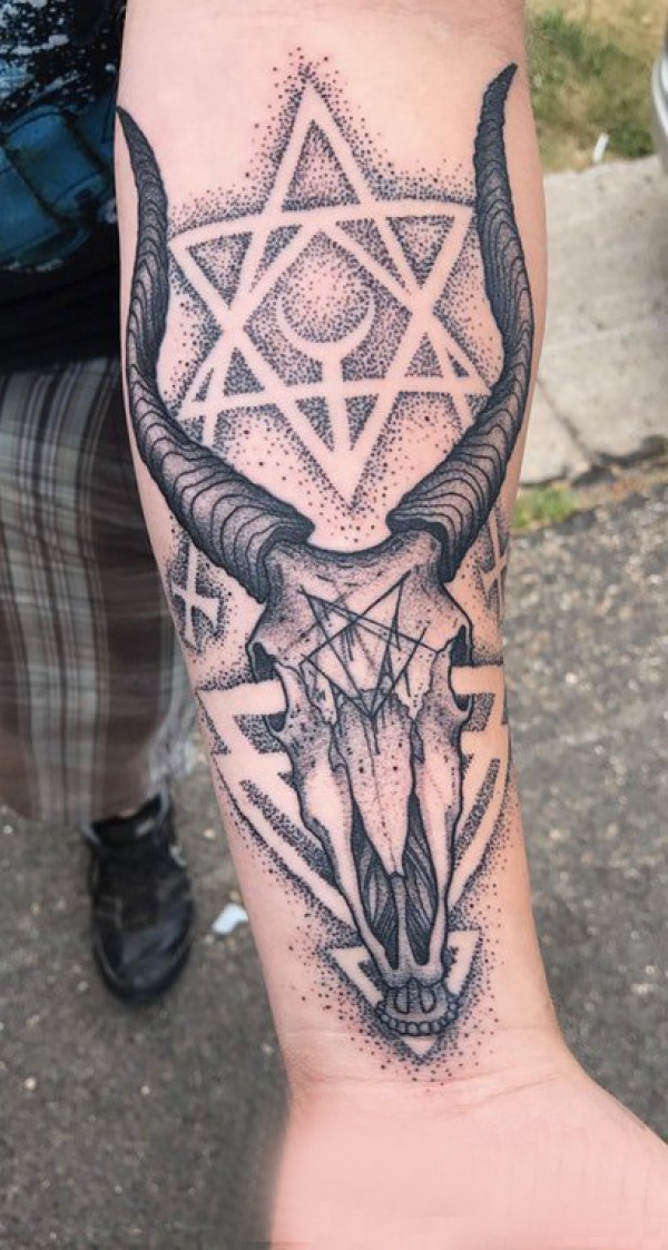 山羊头纹身撒旦 男生手臂上羊头纹身图片