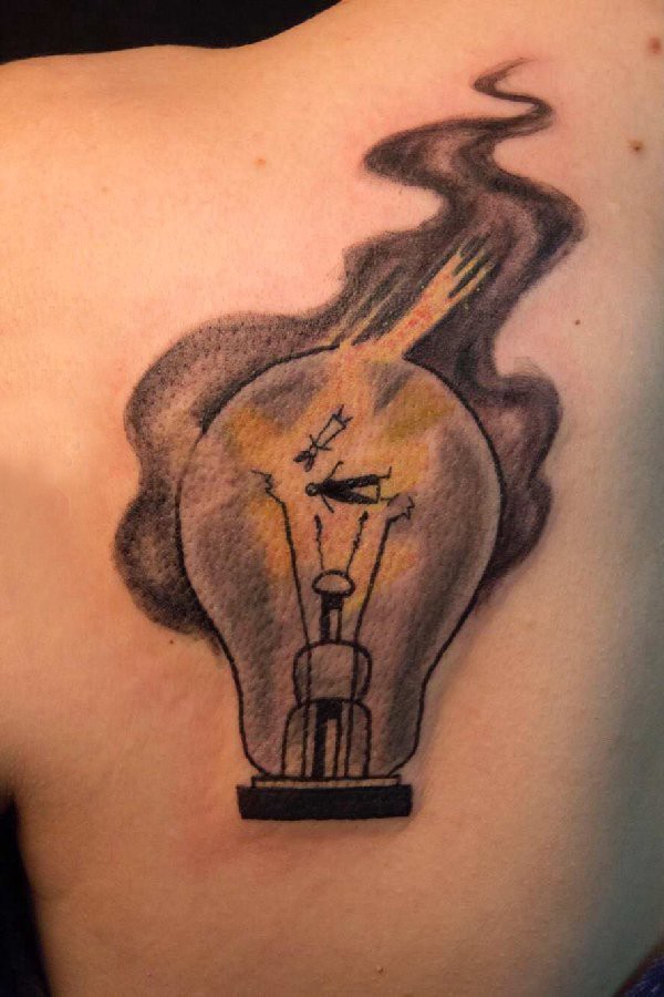 后肩纹身 男生后肩上彩色的灯泡纹身图片
