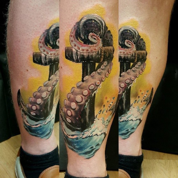欧美船锚纹身 男生小腿上欧美船锚纹身图片