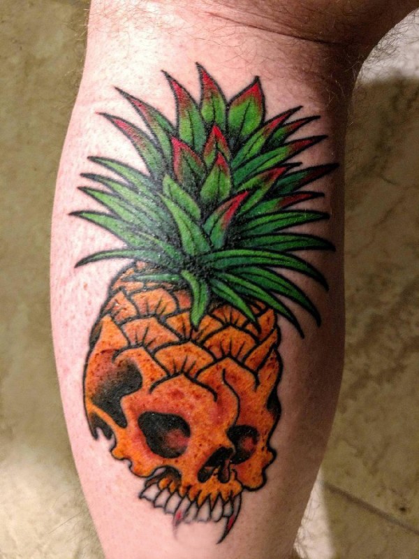 骷髅纹身 男生小腿上菠萝和骷髅纹身图片