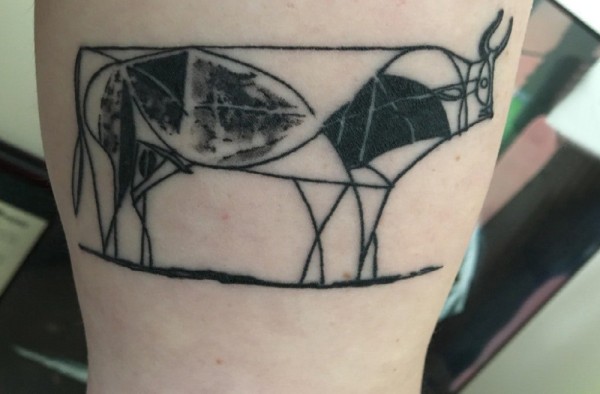 大腿纹身传统 女生大腿上黑色的牛纹身图片