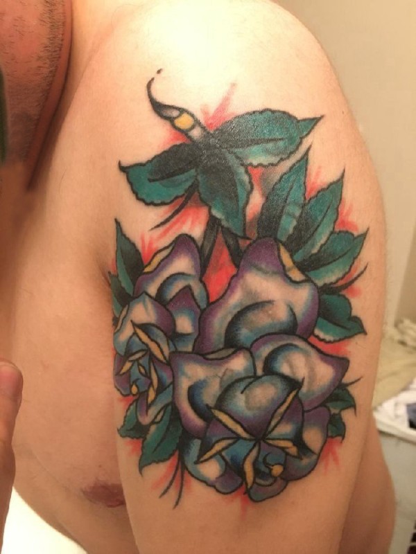 欧美玫瑰纹身 男生手臂上花朵纹身图片