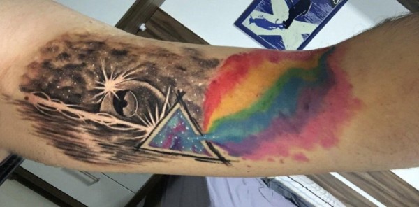 手臂纹身素材 男生手臂上三角形和彩虹纹身图片