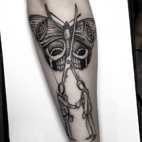 理发剪刀纹身 男生手臂上蝴蝶和剪刀纹身图片