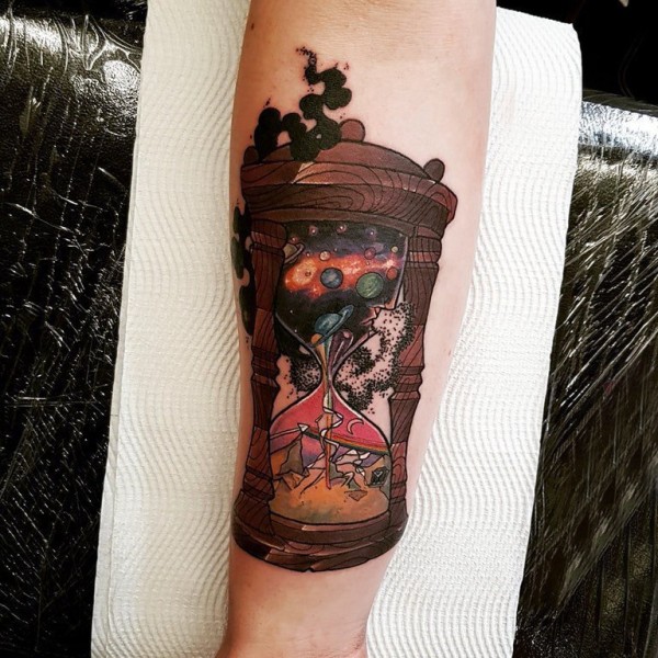 时间沙漏纹身 女生手臂上彩色的沙漏纹身图片