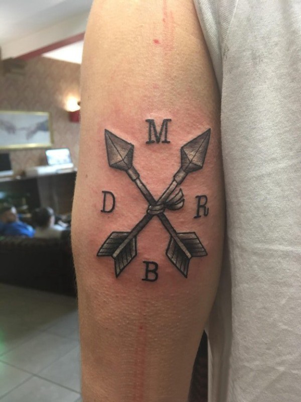 大臂纹身图 男生大臂上字母和箭头纹身图片