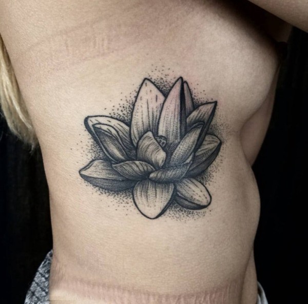侧腰梵文莲花纹身 女生侧腰上黑色的莲花纹身图片