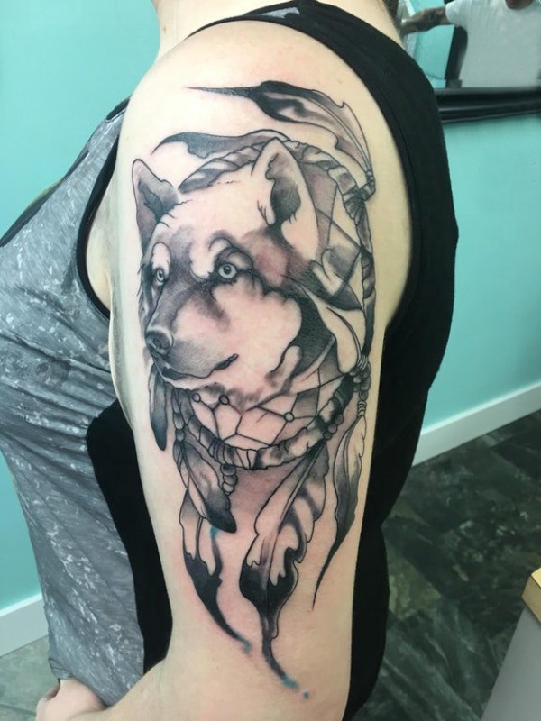双大臂纹身 女生大臂上黑色的狼纹身图片