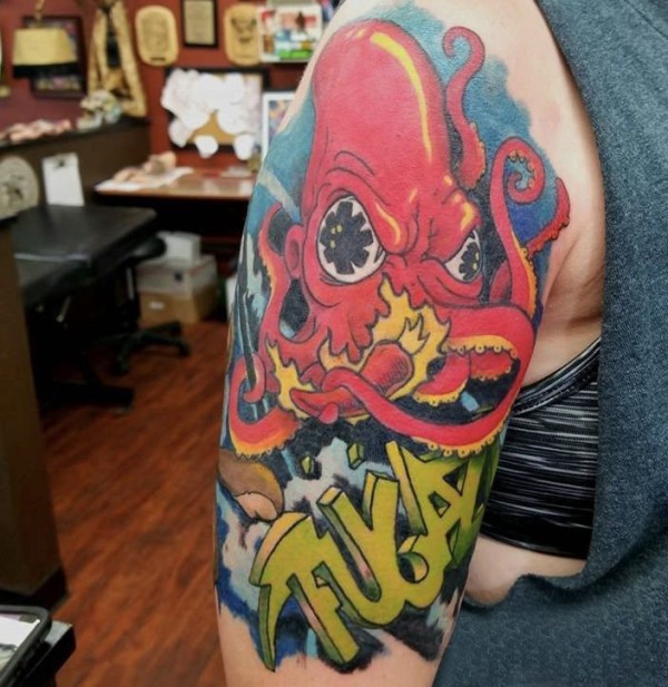 双大臂纹身 男生大臂上英文和章鱼纹身图片