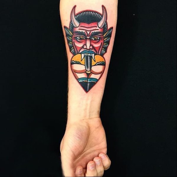 复古卡通红唇美女手臂纹身_卡通纹身图案大全_纹身图吧