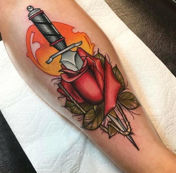 欧美匕首纹身 男生手臂上欧美匕首纹身图片