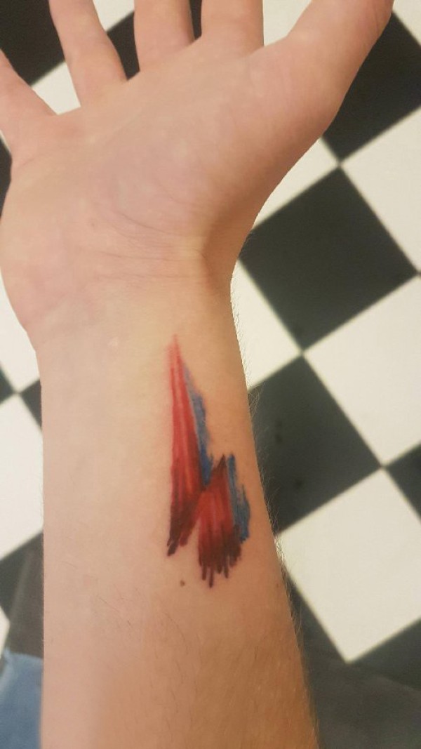 女生纹身手腕 女生手腕上彩色的闪电纹身图片