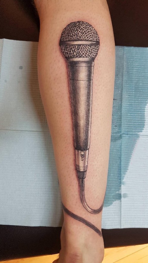 麦克风小纹身 男生手臂上黑色的麦克风纹身图片